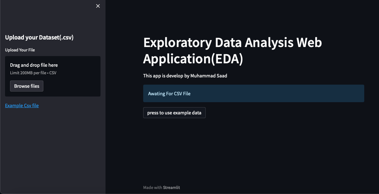 In a data analysis venture, I engineered an exploratory data analysis (EDA) web application utilizing Pandas Profiling and Streamlit. This innovative project seamlessly integrates the power of Pandas Profiling for comprehensive data profiling and Streamlit for creating an interactive user interface. The application offers a user-friendly experience, enabling efficient data exploration, visualization, and insightful analysis. This initiative not only reflects my proficiency in leveraging cutting-edge tools for data analysis but also underscores a commitment to user-centric solutions in the realm of exploratory data analysis.